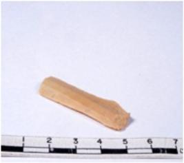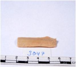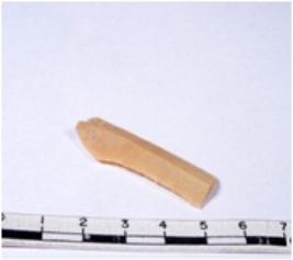 | Description / विवरण | A fragment of a rectangular shaped chert blade showing sides with sharp cutting edges having smooth surface and triangular section. |