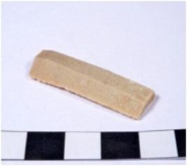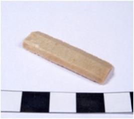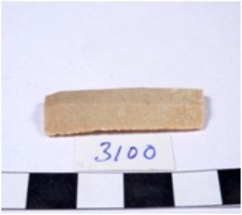| Description / विवरण | A fragment of a rectangular shaped chert blade showing dorsal sides with sharp edges having smooth surface and triangular section. |