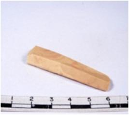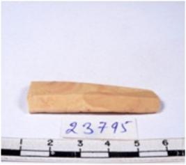| Description / विवरण | A fragment of a rectangular shaped chert blade showing dorsal sides with sharp edges having smooth surface and triangular section. |