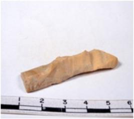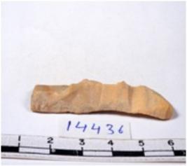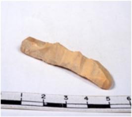 | Description / विवरण | A fragment of a rectangular shaped chert blade showing dorsal sides with sharp edges having smooth surface and triangular section. |