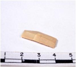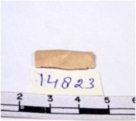 | Description / विवरण | A fragment of a rectangular shaped chert blade showing dorsal sides with sharp cutting edges having smooth surface and triangular section. |