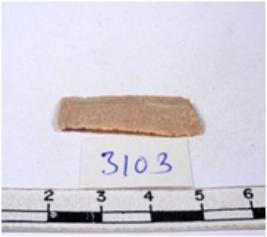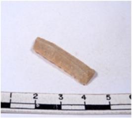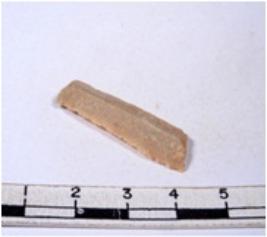 | Description / विवरण | A fragment of a rectangular shaped chert blade showing dorsal sides with sharp edges having smooth surface and triangular section. |