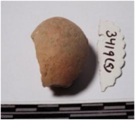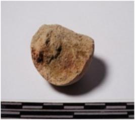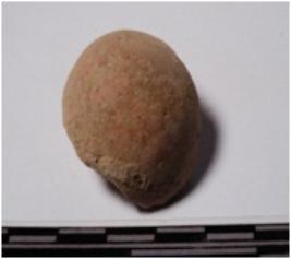 | Description / विवरण | A fragment of a terracotta round shaped sling ball of rough surface. |