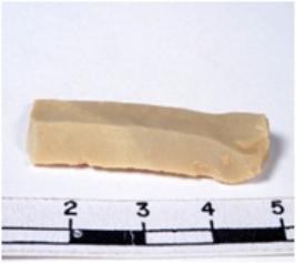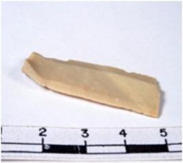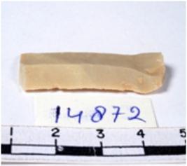 | Description / विवरण | A fragment of a rectangular shaped chert blade showing dorsal sides with sharp edges having smooth surface and triangular section. |