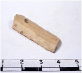 | Description / विवरण | A fragment of a rectangular shaped chert blade showing dorsal sides with sharp edges having smooth surface and triangular section. |
