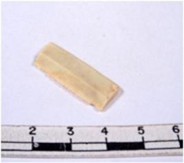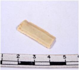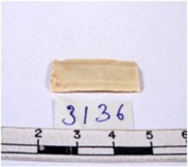 | Description / विवरण | A fragment of a rectangular shaped chert blade showing parallel sides with sharp edges having smooth surface and uneven section. |