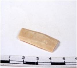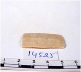 | Description / विवरण | A fragment of a rectangular shaped chert blade showing dorsal sides with sharp edges having smooth surface and triangular section. |