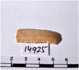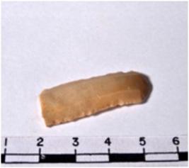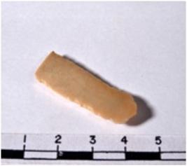 | Description / विवरण | A fragment of a rectangular shaped chert blade showing flat sides with sharp cutting edges having fine surface and triangular section. |