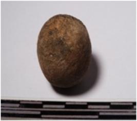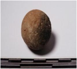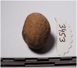 | Description / विवरण | A terracotta sling ball round in shape of smooth surface. |