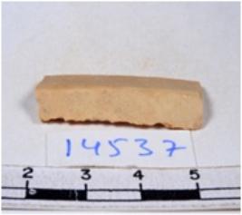 | Description / विवरण | A fragment of a rectangular shaped chert blade showing dorsal sides with sharp edges having smooth surface and triangular section. |