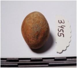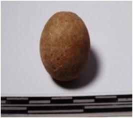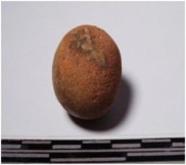 | Description / विवरण | A terracotta sling ball round in shape of smooth surface. |