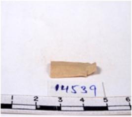 | Description / विवरण | A fragment of a rectangular shaped chert blade showing dorsal sides with sharp edges having smooth surface and triangular section. |