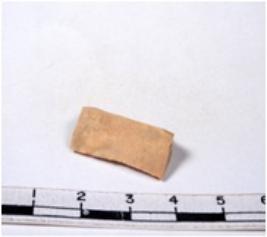 | Description / विवरण | A fragment of a rectangular shaped chert blade showing dorsal sides with sharp edges having smooth surface and uneven section. |