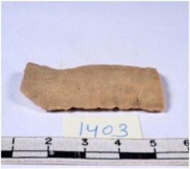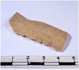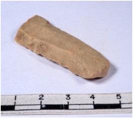 | Description / विवरण | A fragment of a rectangular shaped chert blade showing dorsal sides with sharp edges having smooth surface and triangular section. |