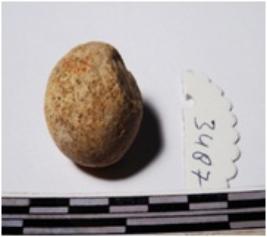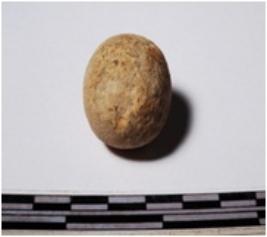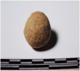| Description / विवरण | A terracotta sling ball round in shape of smooth surface. |