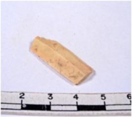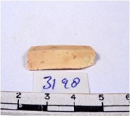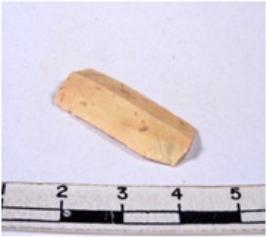 | Description / विवरण | A fragment of a rectangular shaped chert blade showing dorsal sides with sharp cutting edges having smooth surface and triangular section. |