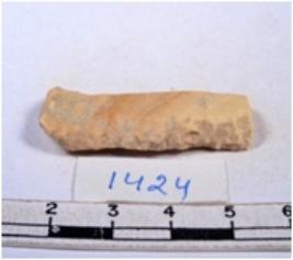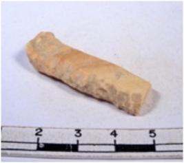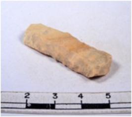 | Description / विवरण | A fragment of a rectangular shaped chert blade showing dorsal sides with sharp edges having smooth surface and triangular section. |