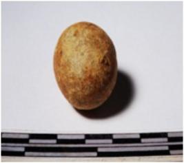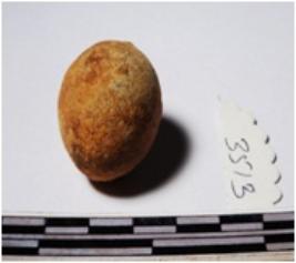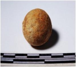 | Description / विवरण | A terracotta sling ball round in shape of smooth surface. |