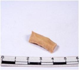 | Description / विवरण | A fragment of a rectangular shaped chert blade showing dorsal sides with sharp cutting edges having smooth surface and triangular section. |