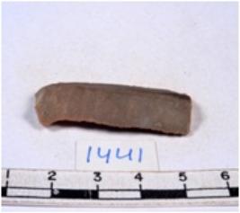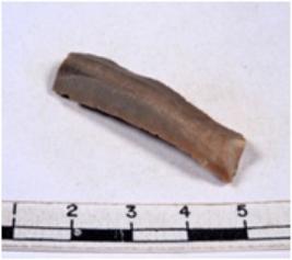 | Description / विवरण | A fragment of a rectangular shaped chert blade showing dorsal sides with sharp edges having smooth surface and triangular section. |