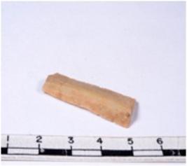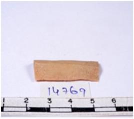 | Description / विवरण | A fragment of a rectangular shaped chert blade showing dorsal sides with sharp edges having smooth surface and triangular section. |
