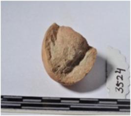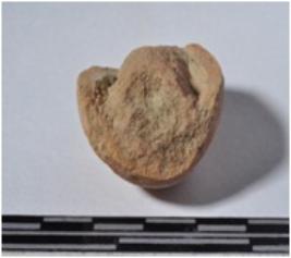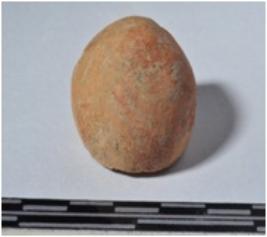 | Description / विवरण | A fragment of a terracotta ball of smooth surface. |