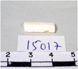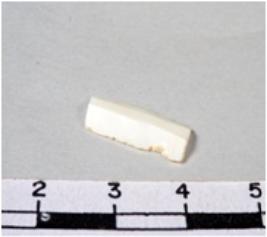 | Description / विवरण | A fragment of a rectangular shaped chert blade showing dorsal sides with sharp cutting edges having smooth surface and triangular section. |