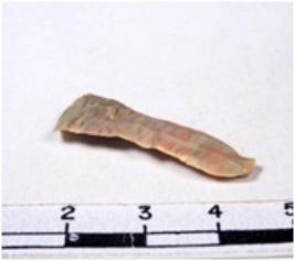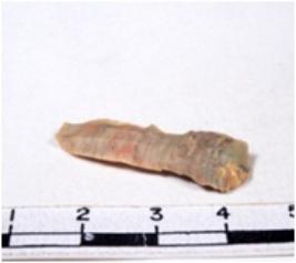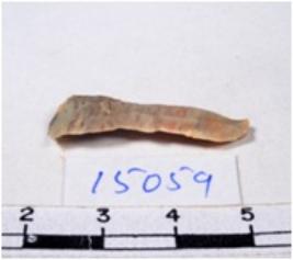 | Description / विवरण | A fragment of a rectangular shaped chert blade showing dorsal sides with sharp cutting edges having smooth surface and triangular section. |