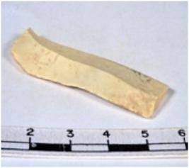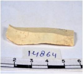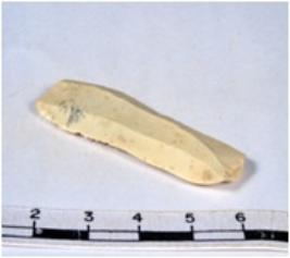 | Description / विवरण | A fragment of a rectangular shaped chert blade showing dorsal sides with sharp edges having smooth surface and triangular section. |