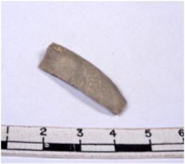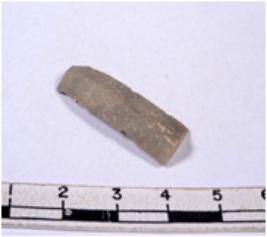 | Description / विवरण | A fragment of a rectangular shaped chert blade showing dorsal sides with sharp cutting edges having smooth surface and triangular section. |