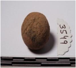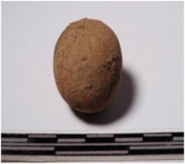 | Description / विवरण | A terracotta sling ball round in shape of smooth surface. |