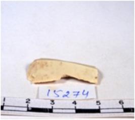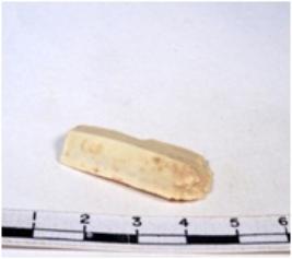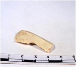 | Description / विवरण | A fragment of a rectangular shaped chert blade showing dorsal sides with sharp edges having smooth surface and triangular section. |