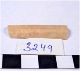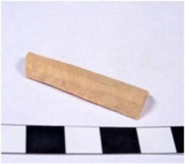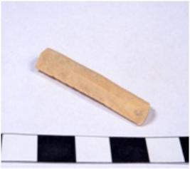 | Description / विवरण | A fragment of a rectangular shaped chert blade showing dorsal sides with sharp cutting edges having smooth surface and triangular section. |