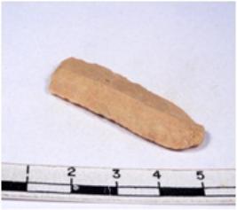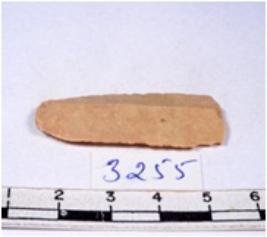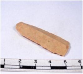 | Description / विवरण | A fragment of a rectangular shaped chert blade showing dorsal sides with sharp edges having smooth surface and triangular section. |
