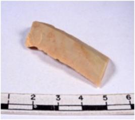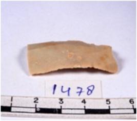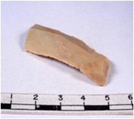 | Description / विवरण | A fragment of a rectangular shaped chert blade showing dorsal sides with sharp edges having smooth surface and triangular section. |