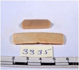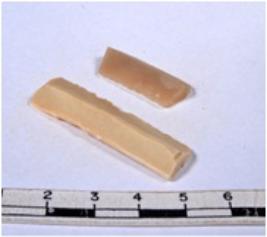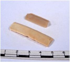| Description / विवरण | A fragment of a rectangular shaped chert blade showing dorsal sides with sharp edges having smooth surface and triangular section. |