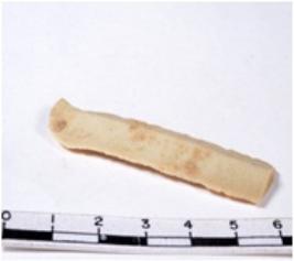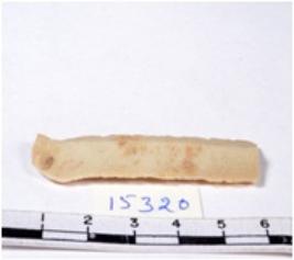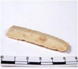 | Description / विवरण | A fragment of a rectangular shaped chert blade showing dorsal sides with sharp cutting edges having smooth surface and triangular section. |