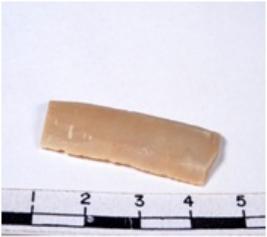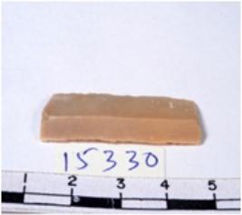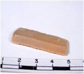| Description / विवरण | A fragment of a rectangular shaped chert blade showing parallel sides with sharp edges having smooth surface and uneven section. |
