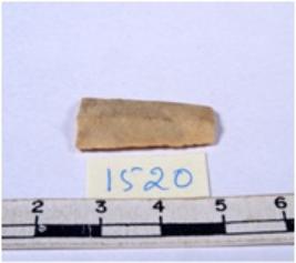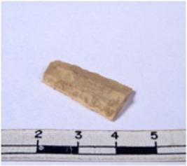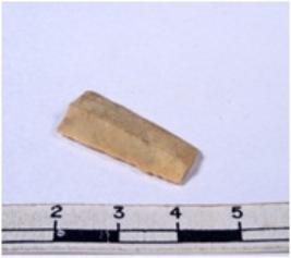 | Description / विवरण | A fragment of a rectangular shaped chert blade showing dorsal sides with sharp edges having smooth surface and triangular section. |