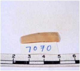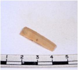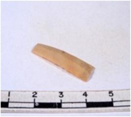 | Description / विवरण | A fragment of a rectangular shaped chert blade showing dorsal sides with sharp edges having smooth surface and triangular section. |
