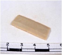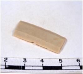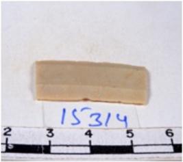 | Description / विवरण | A fragment of a rectangular shaped chert blade showing dorsal sides with sharp edges having smooth surface and uneven section. |
