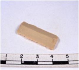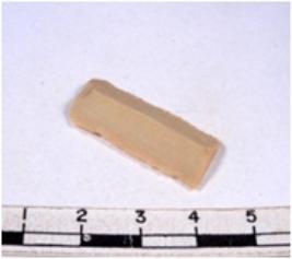| Description / विवरण | A fragment of a rectangular shaped chert blade showing dorsal sides with sharp edges having smooth surface and triangular section. |