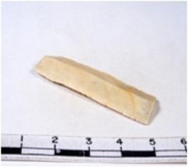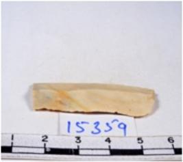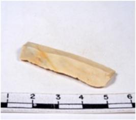 | Description / विवरण | A fragment of a rectangular shaped chert blade showing dorsal sides with sharp edges having smooth surface and triangular section. |