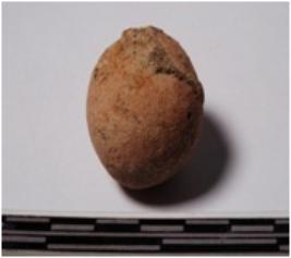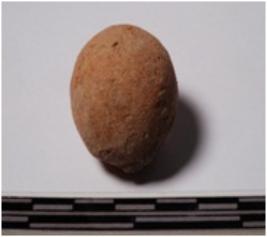 | Description / विवरण | A terracotta round in shaped sling ball of smooth surface. |
