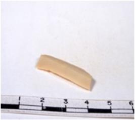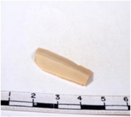 | Description / विवरण | A fragment of a rectangular shaped chert blade showing dorsal sides with sharp cutting edges having smooth surface and triangular section. |