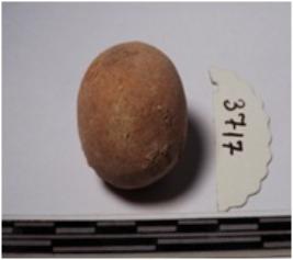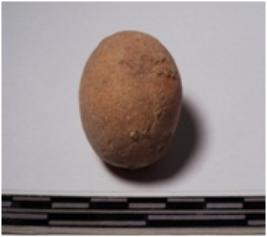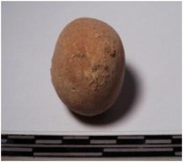 | Description / विवरण | A terracotta round shaped sling ball, circular in section of smooth surface. |