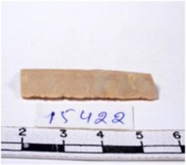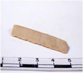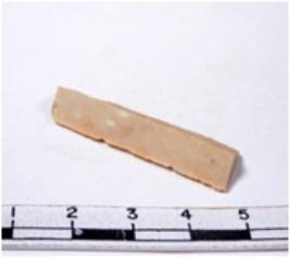 | Description / विवरण | A fragment of a rectangular shaped chert blade showing dorsal sides with sharp edges having smooth surface and triangular section. |