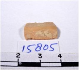 | Description / विवरण | A fragment of a rectangular shaped chert blade showing flat sides with sharp cutting edges having smooth surface and uneven section. |