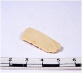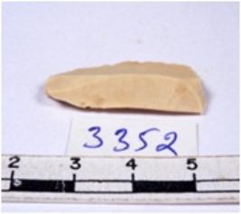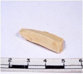 | Description / विवरण | A fragment of a rectangular shaped chert blade showing dorsal sides with sharp cutting edges having smooth surface and triangular section. |