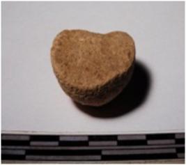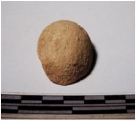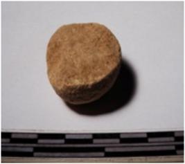 | Description / विवरण | A fragment of a terracotta ball of smooth surface. |